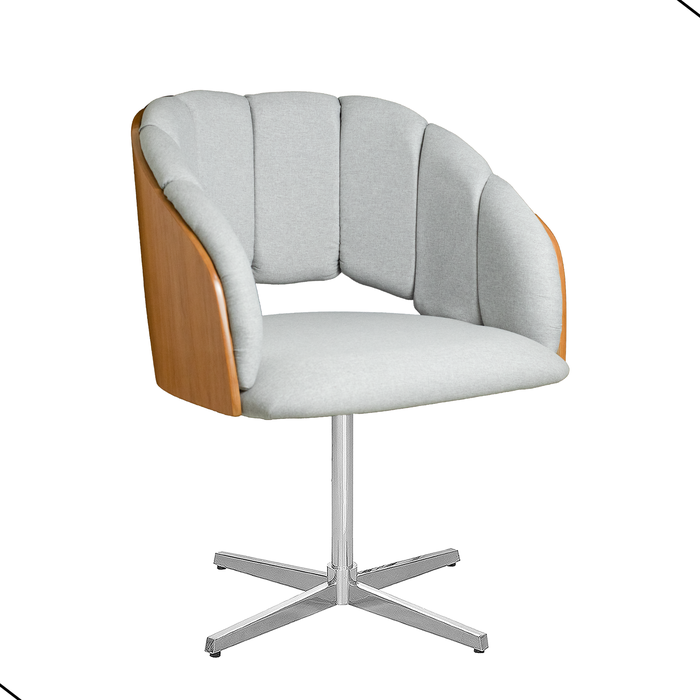 Cadeira Poltrona Sala Jantar Nicole Pés Giratórios Alumínio Linho Cinza Claro