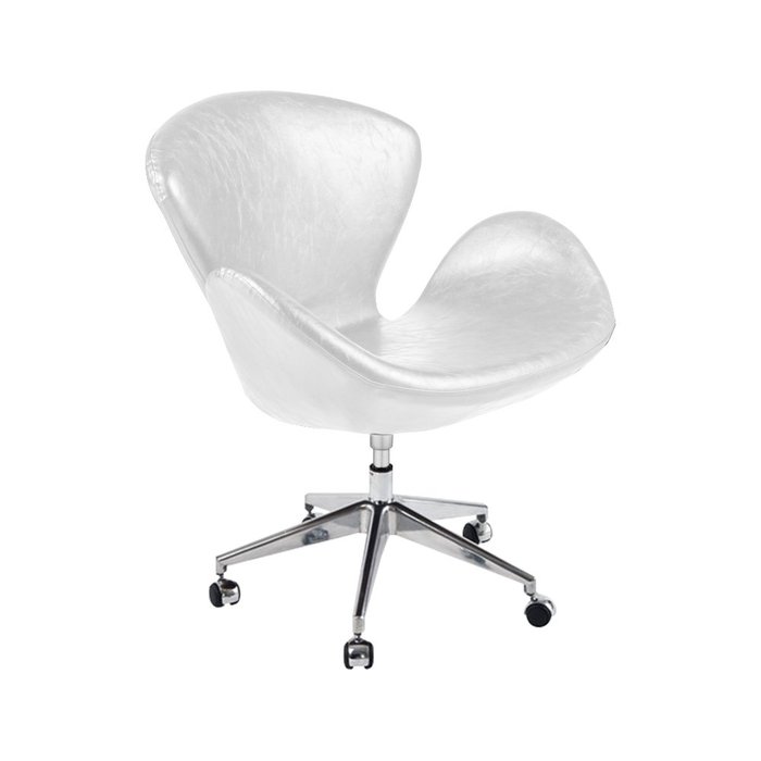 Cadeira Poltrona Swan Office Giratória Couro Natural Branco Branco