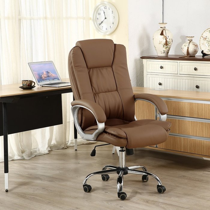 Cadeira Presidente Giratória Almofadada para Escritório Marrom Escuro / Chocolate - Lms-Be-8-661-1