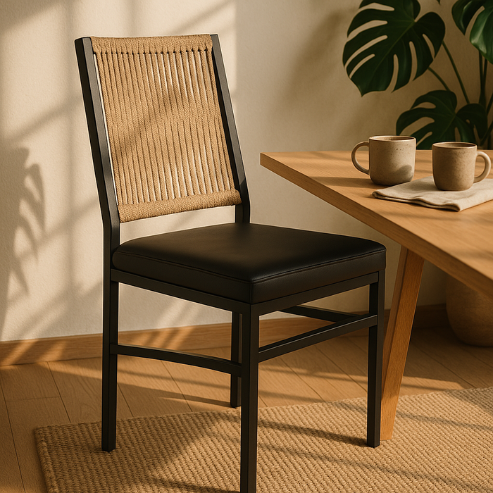 Cadeira Preta Corda Nautica Bege Varanda Sacada Cozinha Kit2 Tinta Eletrostática
