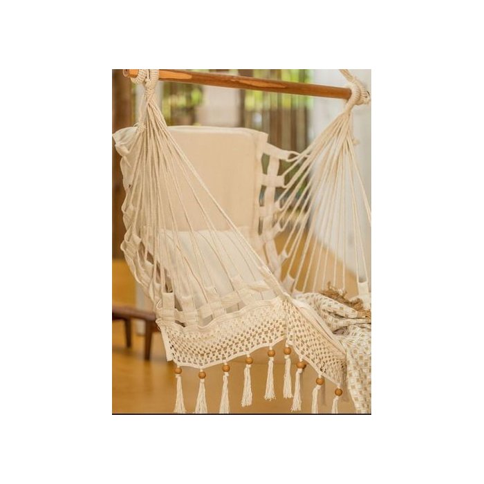 Cadeira rede de balanço suspensa está entre os acessórios indispensáveis, especialmente para aquele clássico momento de lazer entre a família e amigos, proporcionando a sensação de relaxamento e descanso.