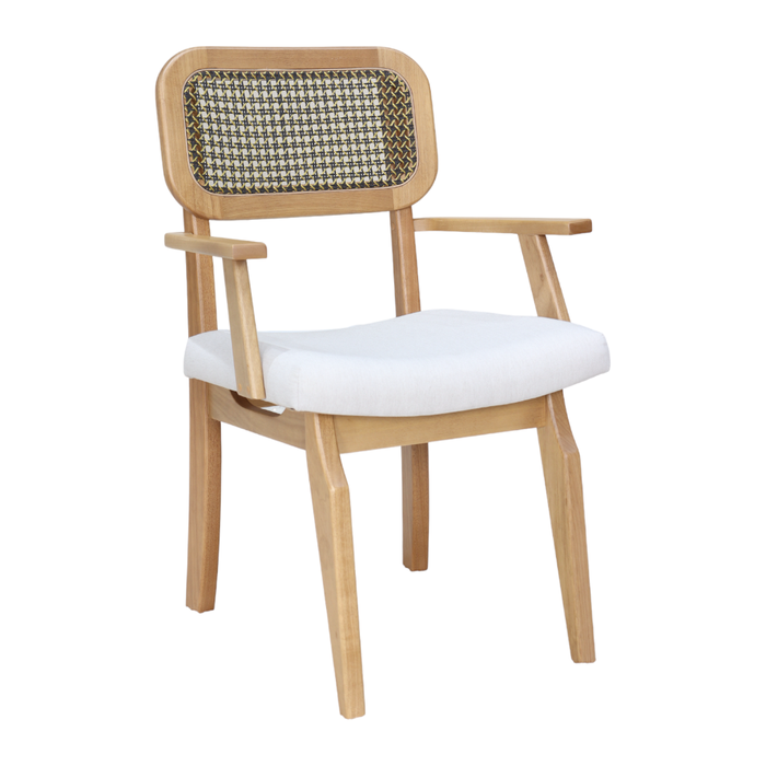 Cadeira Retrô com Braço - Tela Preto com Dourado Madeira Maciça Amêndoa - Tecido Chic