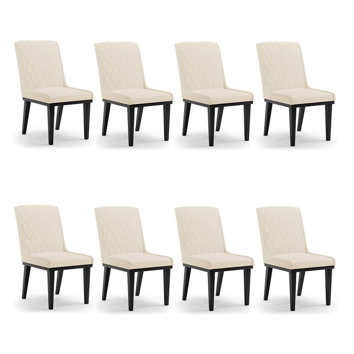 Cadeira Sala de Jantar Base Madeira Preto Kit 8 Sofia Linho Bege A19 D03 - D'rossi Bege A19