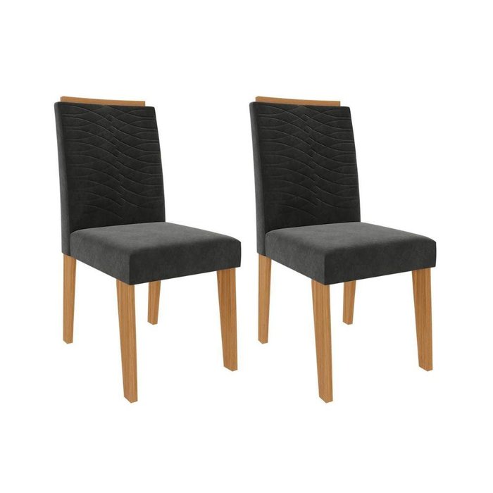 Cadeira Sala de Jantar Clarice Kit 2 Un Nature/Suede Chumbo - Cimol