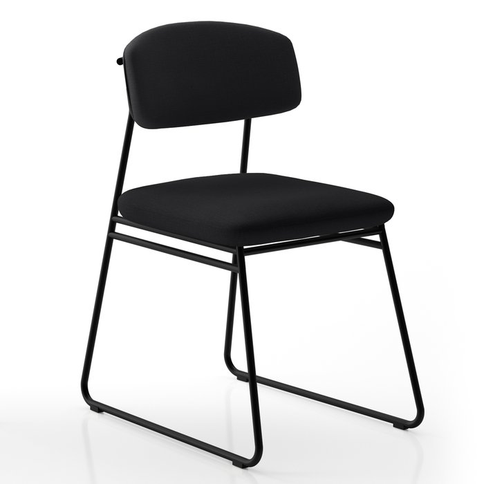 Cadeira para mesa sala de jantar linha Jaraguá CA 503, encosto e assentos estofados em corino Dunas preto . Estrutura em tubo de aço pintada com tinta epoxi , na cor preto fosco. Altura final 86cm profundidade 45cm e largura 44cm.