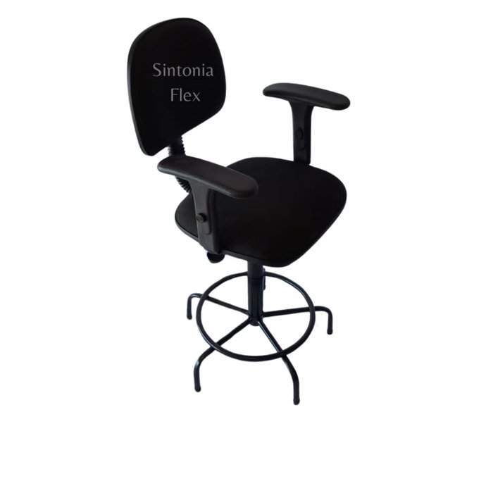 Cadeira Secretaria Caixa Alta com Braço de Regulagem de Altura - - Base de Ferro Fixa - Recpçao Balc