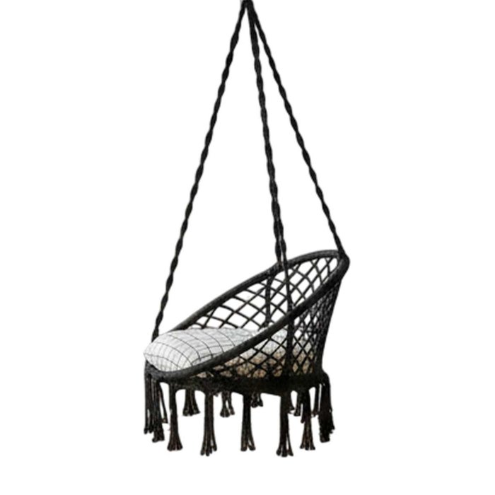 Cadeira Suspensa Rede Balanço Almofada Algodao Casa Varanda Quintal Sacada Teto Decoraçao Confortave Preto