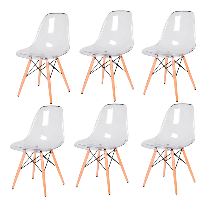 Cadeira Transparente Eiffel Eames Base Madeira Incolor 130pc Quantidade:6 Incolor