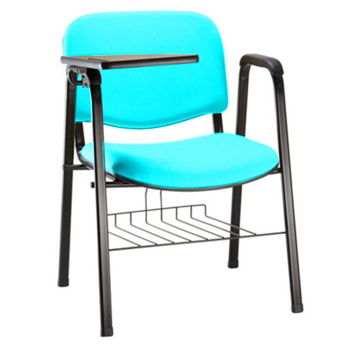 Peso da cadeira: 6,40kg - Empilhável com até 7 cadeiras sem a prancheta