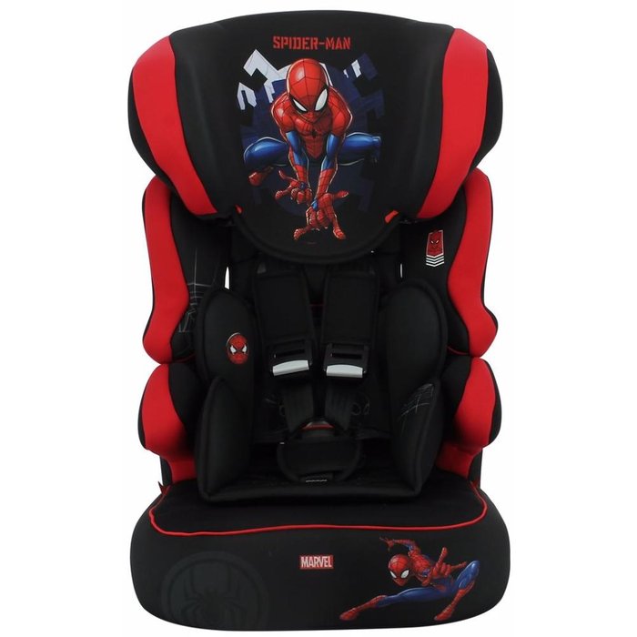 A Cadeirinha De Carro Beline Homem Aranha da Team é certificada para o Grupo 1/2/3 (de 9 kg a 36 kg). Possui travesseiro, ombreiras, almofada redutora de costas e assento e capa protetora da fivela. Cinto de segurança de 5 pontos, ajustador do cinto de segurança nos ombros, 3 posições de ajuste de altura do cinto de segurança. Encosto de cabeça ajustável em várias posições de altura. Possui uma posição de frente para o movimento. No grupo 1 (de 9kg a 18kg) deve ser fixada ao veículo com o cinto de segurança do veículo e a criança deve utilizar o cinto de segurança da própria cadeirinha. No Grupo 2 e 3 (de 15 a 36kg) deve ser utilizada sem os seus cintos de segurança e o cinto de segurança do veículo deve prender a criança e a cadeirinha ao mesmo tempo. Tecido auto extinguível (não propaga o fogo).