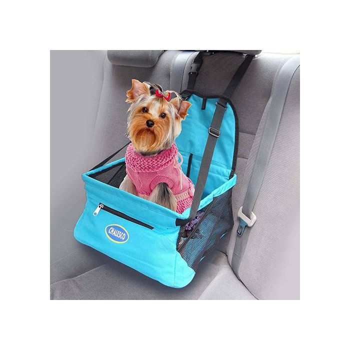 Chegou à Cadeirinha de Transporte para automóvel da Chalesco, com ela seu animalzinho estará confortável e principalmente seguro. O produto é adaptável à maioria dos assentos de automóveis, além de ser dobrável, fácil de transportar e possui alças que travam no próprio cinto de segurança do automóvel. A cadeirinha Car Seat Chalesco é o assento perfeito para levar de forma confortável e segura o seu cachorro ou gato. Possui adaptação para qualquer tipo de carro, é regulável e possui um interior acolchoado com tecido resistente. Seu uso é recomendado para animais de mini e pequeno portes.