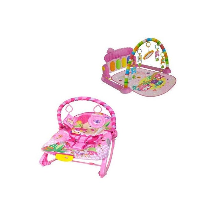 CADEIRA DE DESCANSO,BALANÇO E MUSICALA cadeira cadeirinha de descanso New Rocker veio proporcionar ao seu bebê momentos relaxantes com suas vibrações leves e suas musicas tranquilas para acalmar seu bebê.3 POSIÇOES DE INCLINAÇÃOFunção Balanço Móbiles InterativosAssento AcolchoadoCinto de Segurança de 3 PontosBotão de Musica e VibraçãoPoltrona com níveis ajustáveisEstampa alegrePuxando os brinquedos o bebê desenvolve os músculos das mãos.Borracha antiderrapante nos 4 apoios de pé.Contém: 01 Cadeira de Descanso Musical.Recomendado para crianças até 6 meses ou 7kg no modo balanço e até 2 anos ou 18kg no modo cadeira.caixa frontal do sistema de vibração ( 2 pilhas alcalinas de 1,5V "AA")..NOVO TAPETE DIVERTIDO COM 5 BRINQUEDOS MÓBILES + LUZES + SOMBebê brinca sentado e deitadoSom, luzes, atividades e interatividade para os bebês!Um tapete colorido que estimula seu bebê à ficar sentado e proporciona maior conforto quando ele estiver de bruços. Os brinquedos são fofinhos e coloridos, cheio de texturas que estimulam o tato e a coordenação motora. Luzes e sons divertidos aprimoram as habilidades auditivas do seu bebê, além de proporcionar a criatividade e percepção visual.Principais Características:Idade Recomendada: +0 até 18m (O piano multifunção acompanha o crescimento do bebês com músicas e interação); Percepção Visual: Reconhecimento de diferentes formas e cores;Desenvolvimento Tátil: Os brinquedos pendurados e o piano na base promovem o desenvolvimento muscular dos braços e pernas do bebê;Coordenação Motora: Aos 6 meses o bebê já começa a ficar sentado, treinando a capacidade motora e flexibilidade com os brinquedos;Desenvolvimento Auditivo: As teclas do piano tocam diferentes sons e melodias, estimulando a audição dos pequenos.Dados Técnicos:Funções de Liga / DesligaDimensões do Produto Aberto (LxCxH): 45 x 69 x 1 cmEmbalagem contendo: 1 Tapete, 1 Arco, 1 Piano Multifunção e 5 Brinquedos.Necessário 2 Pilhas AA (Não inclusas)Produto Certificado pelo INMETRO CE-BRI/INNAC - 002820/2019