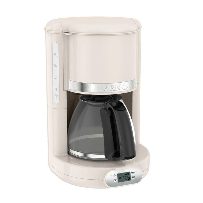 Cafeteira Elétrica Soleil Arno SFCM Marfim 110VTraga estilo e elegância para sua cozinha através da linha Soleil, que possui design retrô, decorando seu ambiente. A Cafeteira Arno Soleil é recomendada para aqueles que desejam maior conveniência e praticidade em seu dia a dia, aliado a . Possui capacidade de 1,25L, visor lateral que facilita o enchimento do reservatório, juntamente com um porta-filtro giratório, que garante um acesso perfeito. Além disso, possui sistema corta pingos, que permite que você sirva uma xícara de café a qualquer momento durante o ciclo de preparação sem medo de pingar. Acompanha função de desligamento automático, após um ciclo de manutenção quente de 30 minutos, para total tranquilidade e . Com Arno Soleil, tenha estilo também na sua cozinha!