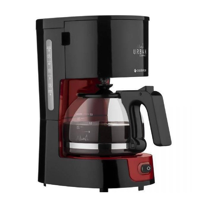Cafeteira Elétrica Cadence Urban Compact, Preta e Vermelha, CAF300, 600 ml, 15 Cafés, 110V