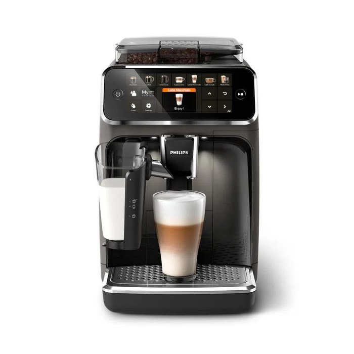 Cafeteira Espresso Super Automática, grãos moídos na hora, com sistema LatteGo para o preparo automático de cappuccinos. São 12 níveis de moagem, moinhos 100% de cerâmica para máxima durabilidade e precisão. 15 bars de pressão e seu café fresco com o máximo de aroma por muito mais tempo. 12 variedades de bebidas como espresso, americano e cappuccino em apenas um toque, além da opção de água quente. Painel touch e intuitivo, com o display My Coffee Choice para preparar as bebidas da maneira em que preferir e salvar até 4 perfis. Compatível também para preparar cafés a partir do pó previamente moído. Sabor, frescor e precisão ao toque de 1 botão!