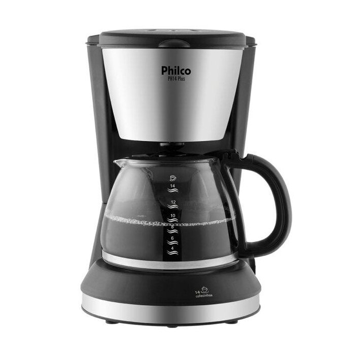 Em certos momentos, tudo que a gente precisa é de um cafezinho! E a Cafeteira PH14 Plus 14 Philco é perfeita para isso, pois faz até 14 cafés.Você nem precisa esperar o café terminar de passar, porque o sistema corta-pingo permite que você retire a jarra enquanto o café está sendo preparado.Mas se você esquecer, não se preocupe, a placa aquecedora mantém seu café quente por até 2 horas sem alterar o sabor.Conta com mais praticidade para o seu dia a dia, pois com o filtro permanente e o porta-filtro removível, você nem precisa se preocupar com a limpeza e nem com o uso de filtro de papel.Tem reservatório com graduação que indica o nível de água.Acompanha colher dosadora para a dosagem exata do café.E com seu detalhe em aço escovado, ela vai trazer muito mais modernidade para a sua cozinha.