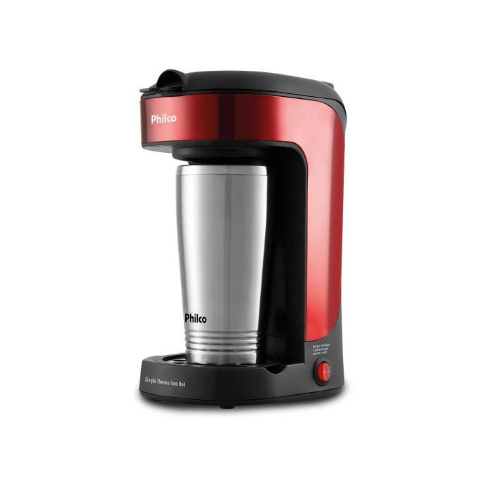 •A Cafeteira Philco Single Thermo Inox Red PCF21 prepara o café diretamente no copo térmico, prático e fácil de transportar!