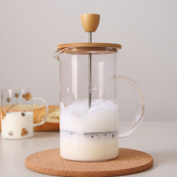 Cafeteira Prensa Francesa de Vidro Borossilicato e Tampa de Bambu 600ml