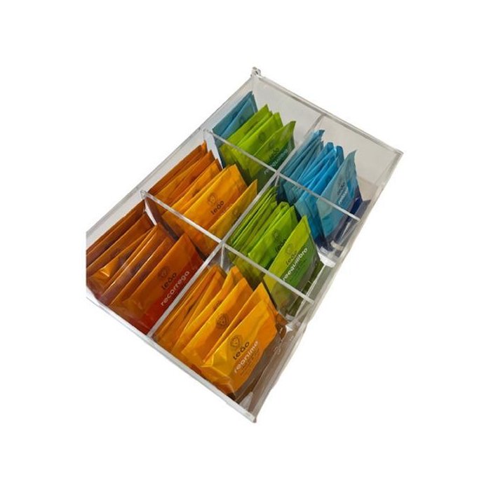 | Nome | Caixa Acrílica Top Porta Saches Chá 6 Divisórias Com Tampa |