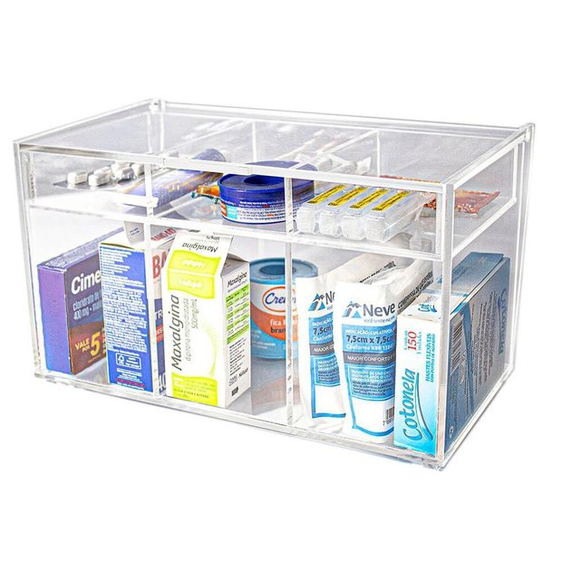 Caixa Acrílico Organizadora para Banheiro, Farmácia em casa com tampa articulada