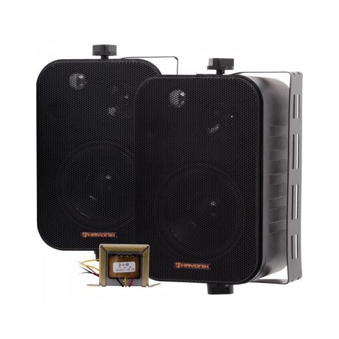 A linha de Caixas Ambience Line da HAYONIK pertencem a um sistema de caixas acústicas para instalação na maioria dos ambientes. Conta com um sistema em 3 Vias, onde dispõe de woofer de 4" para uma grande faixa de frequências, um woofer médio de 2" e um tweeter de 1" onde a resposta em frequências altas é bem mais eficaz. Dispõe também de um sistema com alto-falantes de cone com suspensão, onde o local quer mais atenção em frequências baixas, além de já vir com o trafo de 70V.