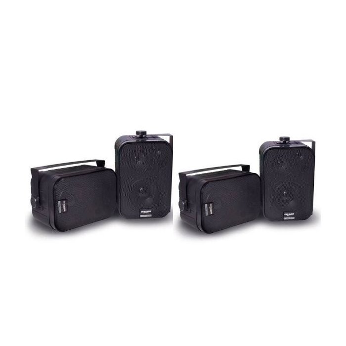 CAIXA ACÚSTICA SOM AMBIENTE SP400 PRETA 60W RMS (2 PARES) Podem ser usadas em pequenos ambientes tais como: - Mercados - Residencias - Escolas - Restaurantes - Bares - Lojas - Consultórios Podem ser usadas com os nossos amplificadores compactos SA10 e SA20 Especificações Técnicas 200 W / 60 W RMS • 03 vias: Woofer de 4” Médio de 2” Tweeter Piezo 1” • Impedância: 8 Ohm • Suporte para fixação • Disponível nas core preta • Embalagem com 02 pares