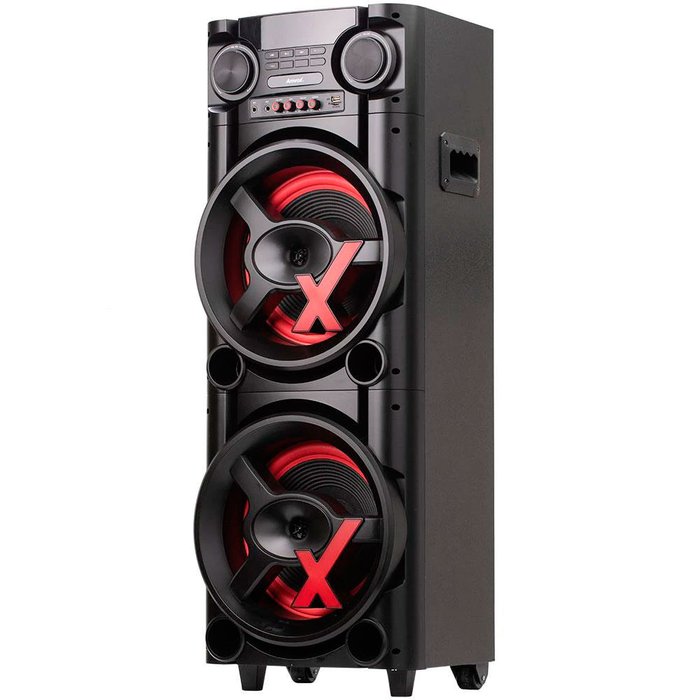 Caixa Amplificada Amvox ACA 1300 NEW X com Bluetooth, Rádio FM, Função Power X - 1300W Preto com Vermelho