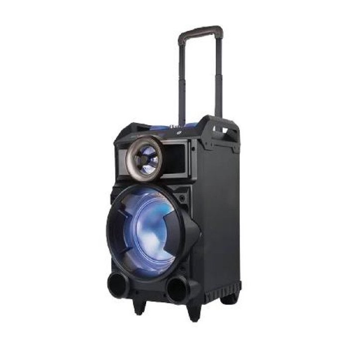 Caixa amplificadoraBluetooth + KaraokêControle remoto MICROFONE EM DOBROCom entrada para dois microfones, essa é a caixa de som ideal para você e seus amigos arrebentarem no karaokê.BLUETOOTHOuça músicas sincronizadas direto do seu smartphone e dispense o uso de cabos.ENTRADA PARA CARTÃO SD, USB E AUXILIARReproduza músicas diretamente do seu pen drive, cartão de memória, celular ou tablet.RÁDIO FMSincronize na sua estação favorita.MICROFONECom entrada para dois microfones com fio, faça apresentações em palestras ou divirta-se no karaokê.WOOFER de 8?Driver de áudio de 8? e tweeter alta sensibilidade e desempenho.BATERIA RECARREGÁVELBateria de lítio recarregável com duração de até 4 horas direto.Anime a festa com efeitos de led nos speakers e painel.PORTÁTILAlça e rodinhas resistentes para transporte.Potencia 150W RMS[Frequencia de resposta 20hz-20khzSensibilidade 85dbImpedancia 3?¶;Bateria 1.800 mAhTempo tocando 3-4 horasTempo carregando 2-3 horasBivolt 127-220vConteudo da embalagem 1 Caixa amplificadora1 Microfone com fio 1 Manual do usuario