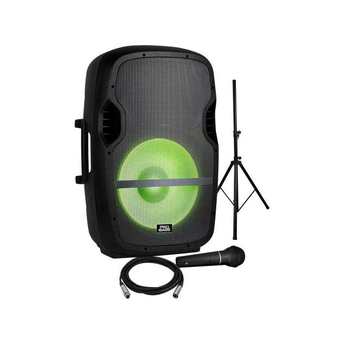 Kit Caixa Ativa 15 com Iluminação Elevate LP ProBass + Tripé + Microfone
