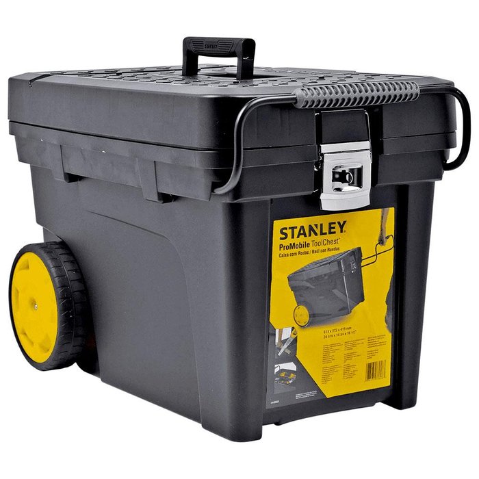 A Caixa Baú Ferramentas com Rodas Contractor STST33027 Stanley possui alça metálica retrátil, qualidade superior a quaisquer modelos similares do mercado.