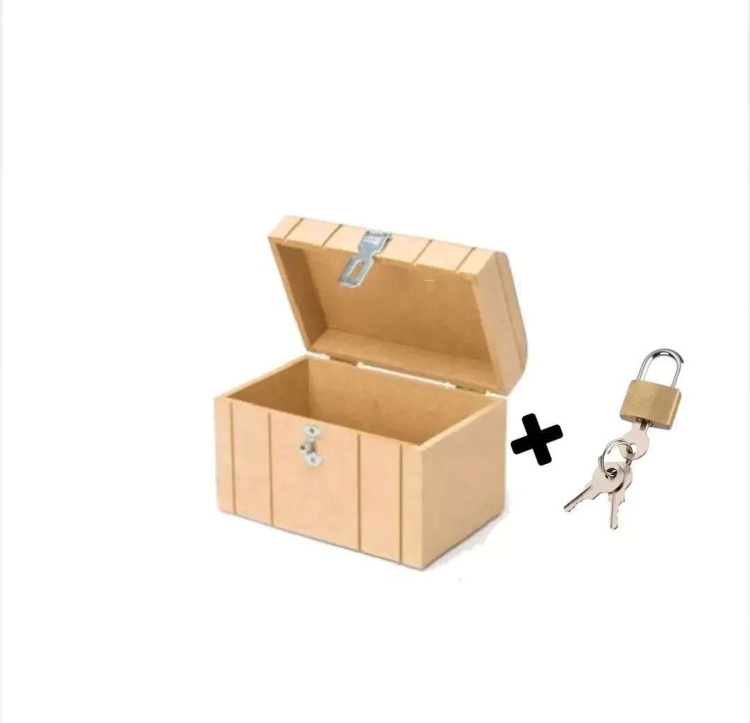 Caixa Baú Madeira Mdf + Cadeado Artesanatos