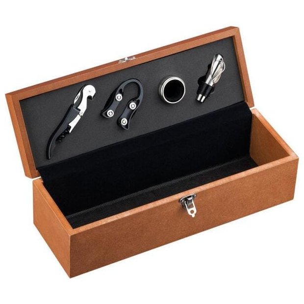 Caixa Boccati Madeira Marrom 1 Garrafa De Vinho E Acessórios