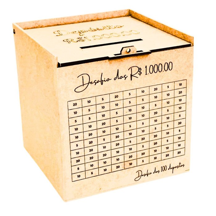 Caixa Cofre Desafio 1000 Reais 100 Depósitos Poupança Moedas Cédulas Dinheiro Mil Reais