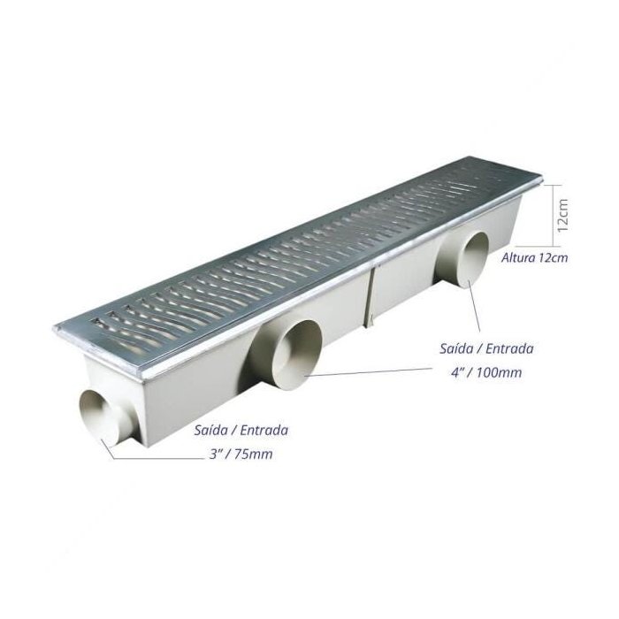CAIXA COLETORA PVC GRELHA ALUMINIO POLIDO 14X96 SAIDA LATERAL COSTA NAVARRO