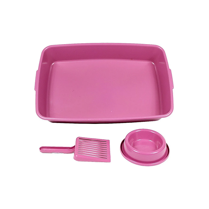 Caixa de areia para Gatos com Pazinha e comedouro - Rosa