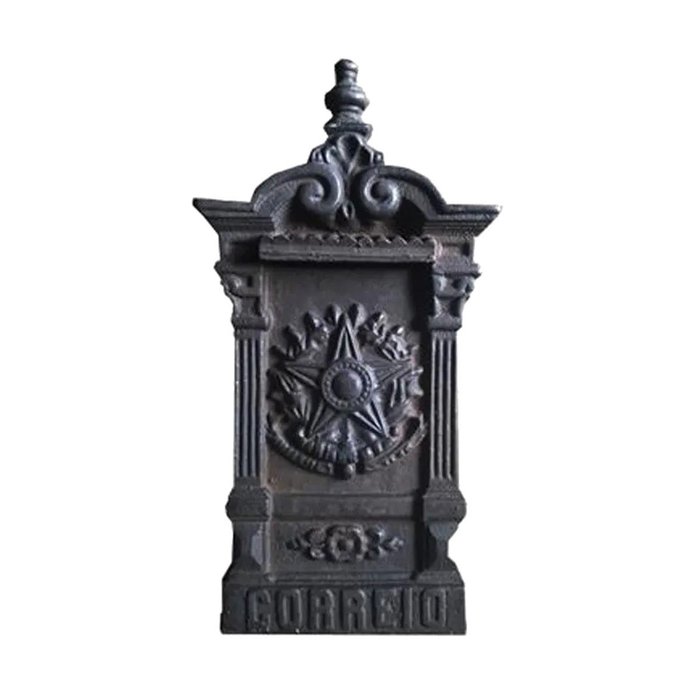 Caixa de Correio Cartas Colonial Brasão Sem Pé Ferro Fundido FUNDIÇÃO SÃO CRISTOVÃO
