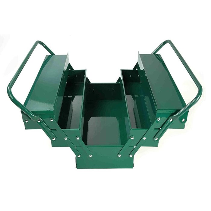 Caixa de Ferramentas Sanfonada 5 Gavetas Sata - Possibilita o uso de cadeado. - Confortável alça tubular. - Braço de suporte reforçado. - Chapa em aço reforçado de 1,2mm de espessura. - Pintura verde brilhante padrão Sata. - Fabricados com o que há de mais moderno em matéria-prima aliado á mais alta tecnologia. - Robusto e resistente. - Projeto evolutivo, leve, compacto e mantendo o alto desempenho. - Alta qualidade. - Maior resistência ao desgaste. - Anticorrosiva. - Muito mais resistência e versatilidade para os seus serviços! Características técnicas: Marca Sata Cód. Interno do fornecedor ST95104ASC Tipo Sanfonada Cor Verde Quantidade de gavetas 5 Indicado: - Proporciona o armazenamento e transporte de ferramentas manuais, peças e acessórios. Aplicação: - Oficinas, mecânicos, etc.