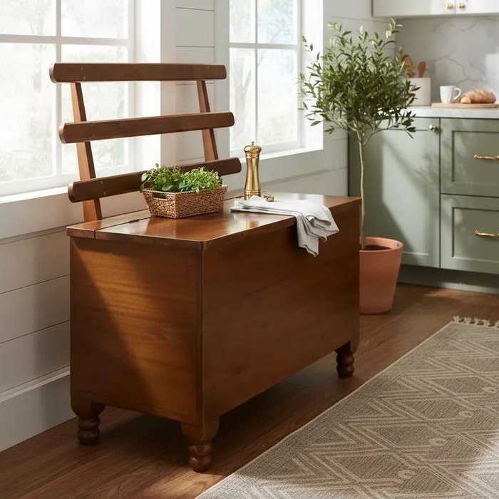 Caixa de Lenha com Encosto em Madeira Maciça Imbuia imbuia