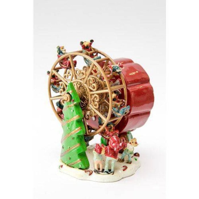 Quem é que nunca se emocionou com uma caixa de música? Esta linda e original caixa de música funciona apenas com corda, basta girar a para iniciar a melodia de natal. Ela é em formato de roda gigante com 8 bancos que ficam girando e tem um pinheiro de natal na parte frontal.