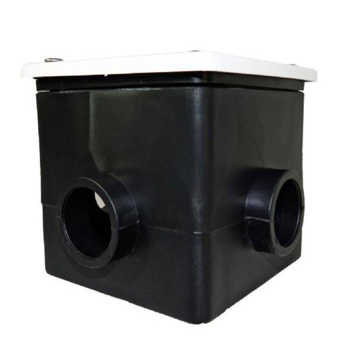 Com fabricação em termoplástico (Abs) injetado, a caixa de passagem Sodramar possui tampa em Aço ou Abs fixada com quatro parafusos em aço inox, guarnição de borracha, sistema prensa cabo, quatro saídas opcionais de 3/4 colável,e é a única no mercado com exclusivo sistema de prolongador que permite sua adaptação a qualquer tipo de acabamento na borda da piscina. Tem por finalidade facilitar a manutenção e instalação da iluminação subaquática da piscina.
