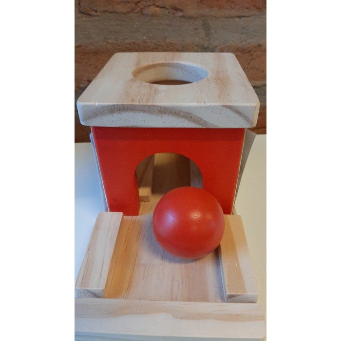 A caixa de permanência é um brinquedo utilizado no método montessoriano, para desenvolver o sentido de permanência, pois o bebê pode ver como a bola se esconde e depois volta a aparecer.