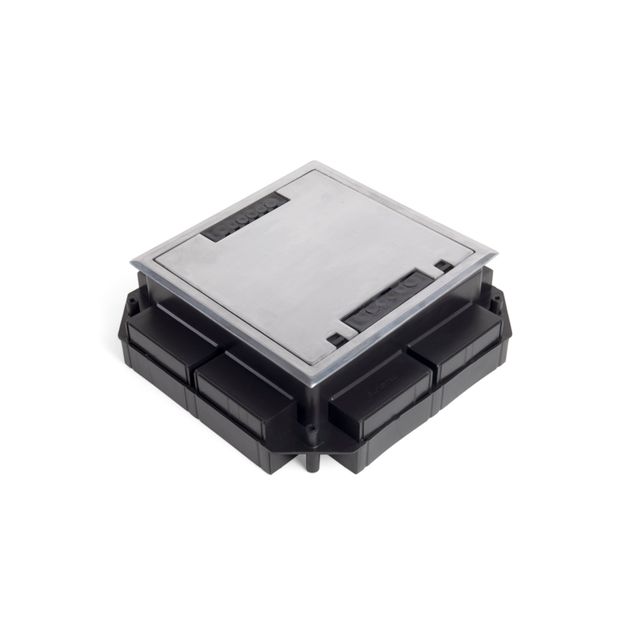 Comercializada para instalação em malha de até 2 dutos STD (73mm) ou 1 duto CANAL (166mm), nos quatros lados/sentidos, nossa caixa de piso oferece modularidade e flexibilidade real para pisos concretados e outros sistemas. Economize tempo, reduza custos e ganhe em praticidade.