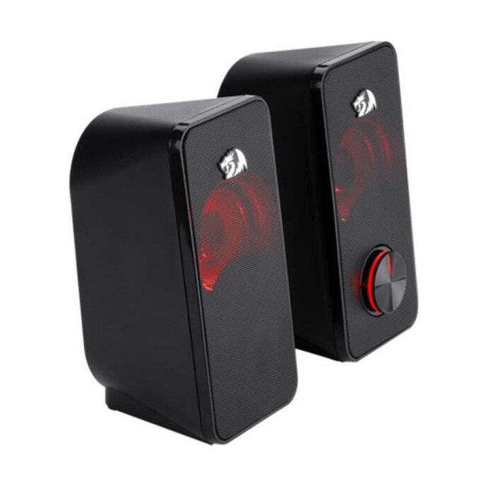 Speaker Gamer Redragon GS500 Stentor para PC, canal 2.0 Stereo com luz de fundo vermelha.