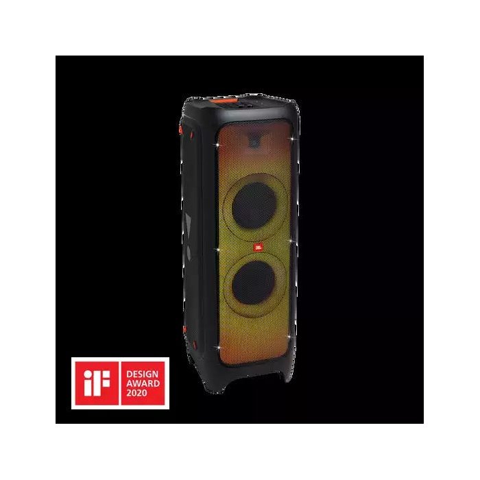 Caixa de som Amplificada JBL PartyBox 1000 Bluetooth 1100W RMS Luzes, pulseira, KARAOKÊCaixa de som potente Bluetooth para festas com efeitos de luzes em todo o painel! A JBL PartyBox 1000 é uma poderosa caixa de som para festas com o som de qualidade da JBL e um show de luzes em todo o painel. Basta plugar seu microfone ou guitarra e assumir o palco, ou reproduzir a sua playlist via Bluetooth ou pendrive USB. O LED luminoso para DJ e a Party Band trazem o som de um show para a sua festa! Conecte duas caixas de som PartyBox sem fio com o recurso TWS ou com fio de uma saída RCA para outra entrada RCA. Que comece a festa! * Som com a assinatura da JBL; * Show de luzes * Pulseira detectora de gestos * entrada para microfone e instrumentos musicais * reprodução USB * rodas ocultas que facilitam o transporte * DJ Pad Especificações:Potência de Saída (W RMS) 1100WResposta de frequência 40Hz-18kHz (-6dB)Reforço de graves SimConexão TWS (True Wireless Stereo) em até 2 caixas de som para festas usando tecnologia Bluetooth SimDimensões (cm) W39.7 x D39 x H105Dimensções (in) W15.6 x D15.3 x H43.3Peso (kg) 34.7Conectividade sem fio Tecnologia BluetoothPulseira detectora de gestos com tecnologia BLE SimEntrada cabo de áudio 3,5 mm SimDesligamento automático SimBluetooth SimMicrofone integrado NãoFunção karaokê SimShow de luzes Sim