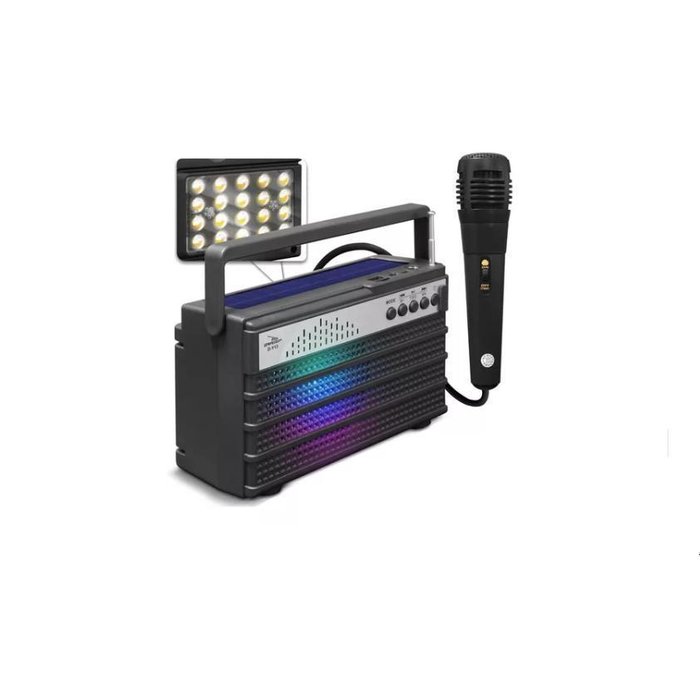 Caixa de Som Bluetooth Com laterna de Emergência e Carregamento Solar LED RGB e Microfone