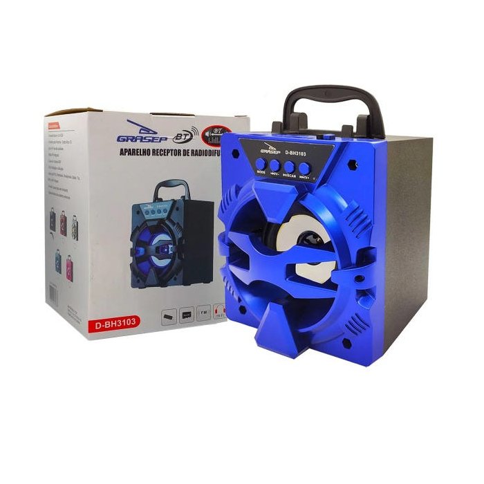 Caixa de Som Bluetooth Mini com e USB, Fm, Mini SD - D-Bh3103 - Azul
