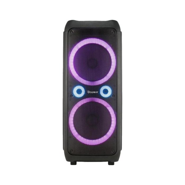 A Caixa de Som Portátil Sumay Fortress é a escolha perfeita para os amantes de música que buscam qualidade e versatilidade. Com sistema de som de 1600W de potência musical, você pode desfrutar da sua playlist favorita com incrível clareza e impacto. Sua bateria de longa duração permite até 4 horas de reprodução contínua, e sua alça torna o transporte fácil e conveniente. Com várias opções de conectividade, incluindo Bluetooth, USB, Cartão de Memória TF, SD, Rádio FM e entrada AUX, você pode reproduzir música de várias fontes. Além disso, a capacidade de emparelhamento TWS permite conectar várias caixas para um som ainda mais imersivo. E se você gosta de cantar, pode fazer um karaokê conectando um microfone à Caixa de Som. A Sumay Fortress é a escolha ideal para uma experiência musical completa e divertida.Alimentação:110-240V ~50 / 60HzDimensões:da caixa de som (L x A x C): 46,5 x 105,5 x 45cm aprox.Peso:líquido: 22,6 Kg aprox. Peso bruto: 25,8 Kg aprox.Impedância:4ΩCor:PretaPotência:1600W RMSEntradas:USB, 1 x AUX (P2), 2 x P10 Cartão de memória SD/TFPesquisa:caixa de som|caixa de som portatil|caixa sumay|sumay|fortress|caixa de som preta|preta • Luz de Led multicor; • Carregador DC Power; • Prioridade de Microfone; • Equalizador 6 bandas; • Função troca de pasta; • 2ALTO-FALANTE DE 12”. Informações Técnicas: • Bateria recarregável: 12V / 9A-Chumbo Ácido • Duração da bateria: Até 4h (60% do volume) • Frequência de resposta: 40Hz-20kHz • Alto falante: 12” x2 • Tweeter: 3” x 1 • Display: LED integrado • Tecnologia: Rádio FM, Bluetooth, TWS, X-BASS, Gravação, Mic. Prioridade, função troca de pasta, Equalizador 6 Bandas • Rádio FM: Frequência 88–108MHz • Itens inclusos na embalagem: Caixa de som portátil, cabo carregador, controle remoto, manual do usuário e cartão de garantia