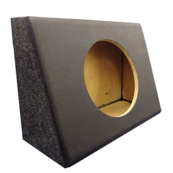 Caixa de som vazia 12" p/ sub slim, invertida, ideal p/ Pickup. Dimensões: 9,5 cm sup., 20 cm inf., 45 cm comp., 33 cm alt., 22 litros.