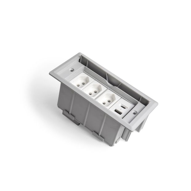 Caixa de Tomada Embutir Mesa Bancada com 3 Tomadas + Usb 20w Cinza cinza