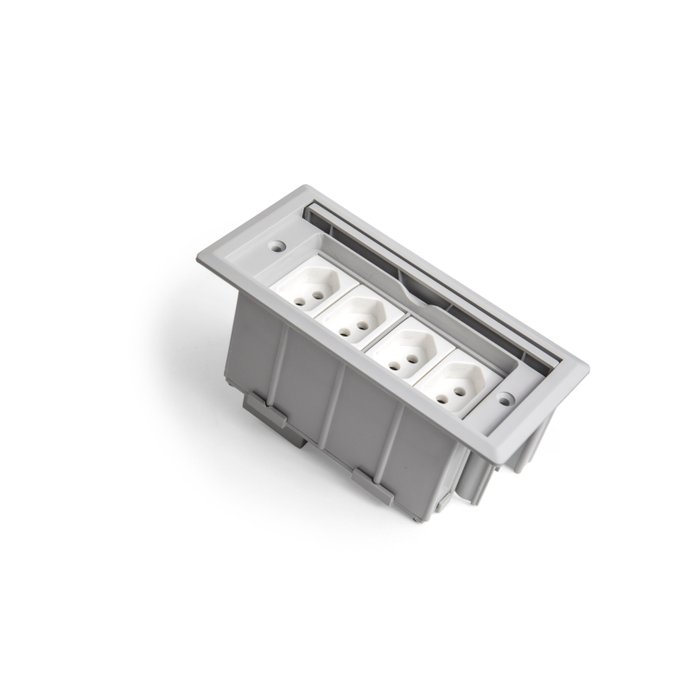 Caixa de Tomada Embutir Mesa Bancada com 4 Tomadas Cinza